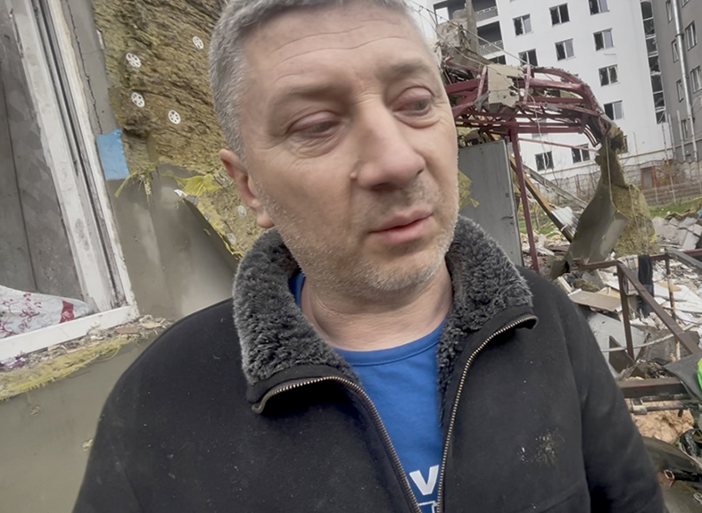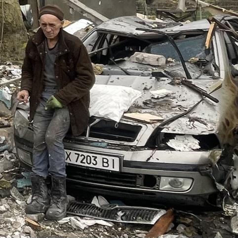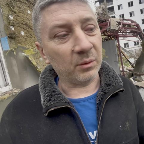 “Buvo pusė dešimtos vakaro, kartu su penkiolikmečiu sūnumi ir keturiolikmete dukra virtuvėje taisėme arbatą bei sumuštinius vakarienei ir laukėme ateinančios Irinos. Ji žiūrėjo mėgstamą filmą ir tuoj tuoj turėjo pasirodyti, bet tą akimirką jos kambaryje sprogo dronas. Mus tik apibraižė stiklų šukės, o Iriną užklojo storas cemento nuolaužų sluoksnis. Su į pagalbą atbėgusiu kaimynu puolėme atkasti, bet žmona jau buvo mirusi. Sunkiai abu dirbome, pasistatėme naują namą, o dabar – Irina negyva, namo nebėra. Kur reikės su vaikais dėtis – nežinia. Esu ištiktas šoko, esu pasimetęs, esu piktas ant Maskvos ir esu piktas ant viso pasaulio, kad nesugeba sustabdyti šio karo”, – kalbėjo Viačeslavas.