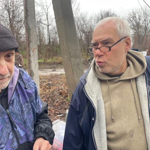 Taikos norą akcentavo ir pensininkai Viktoras Skripko bei Denisas Krivonosas, kuriuos sutikau šalia gaisravietės, atsiradusios po naktinės dronų atakos Charkive.