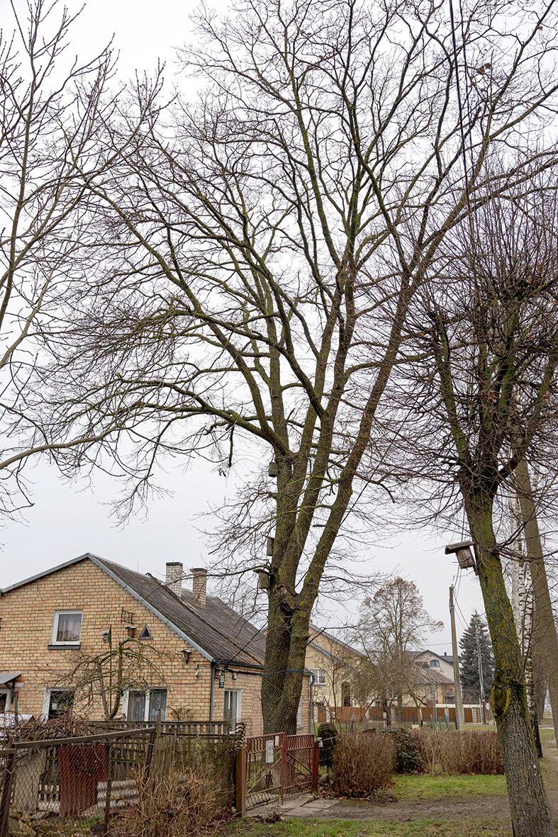 Gyventoja baiminasi, kad medis gali užgriūti namą. Kiek ąžuolui metų, nežino, nes kai įsigijo namą, medis jau augo.