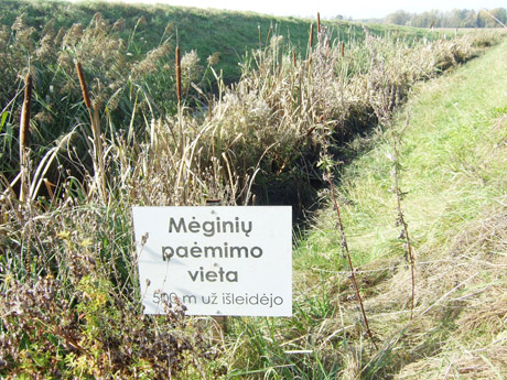 Iš šios Obe­lės upės vie­tos ima­mi iš va­lyk­los išei­nan­čio van­dens mė­gi­niai.
