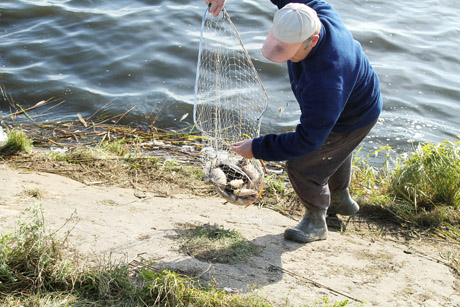 Kiek­vie­ną­kart į juo­dą van­de­nį pa­nar­di­nę sam­čius vy­rai iš­trauk­da­vo žu­vų.