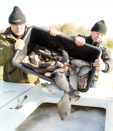 Pir­miau­sia iš­gai­šo kar­piai ir ly­de­kos. Pri­du­sę ka­ro­sai ir va­kar te­be­bu­vo trau­kia­mi pil­nais graibš­tais.