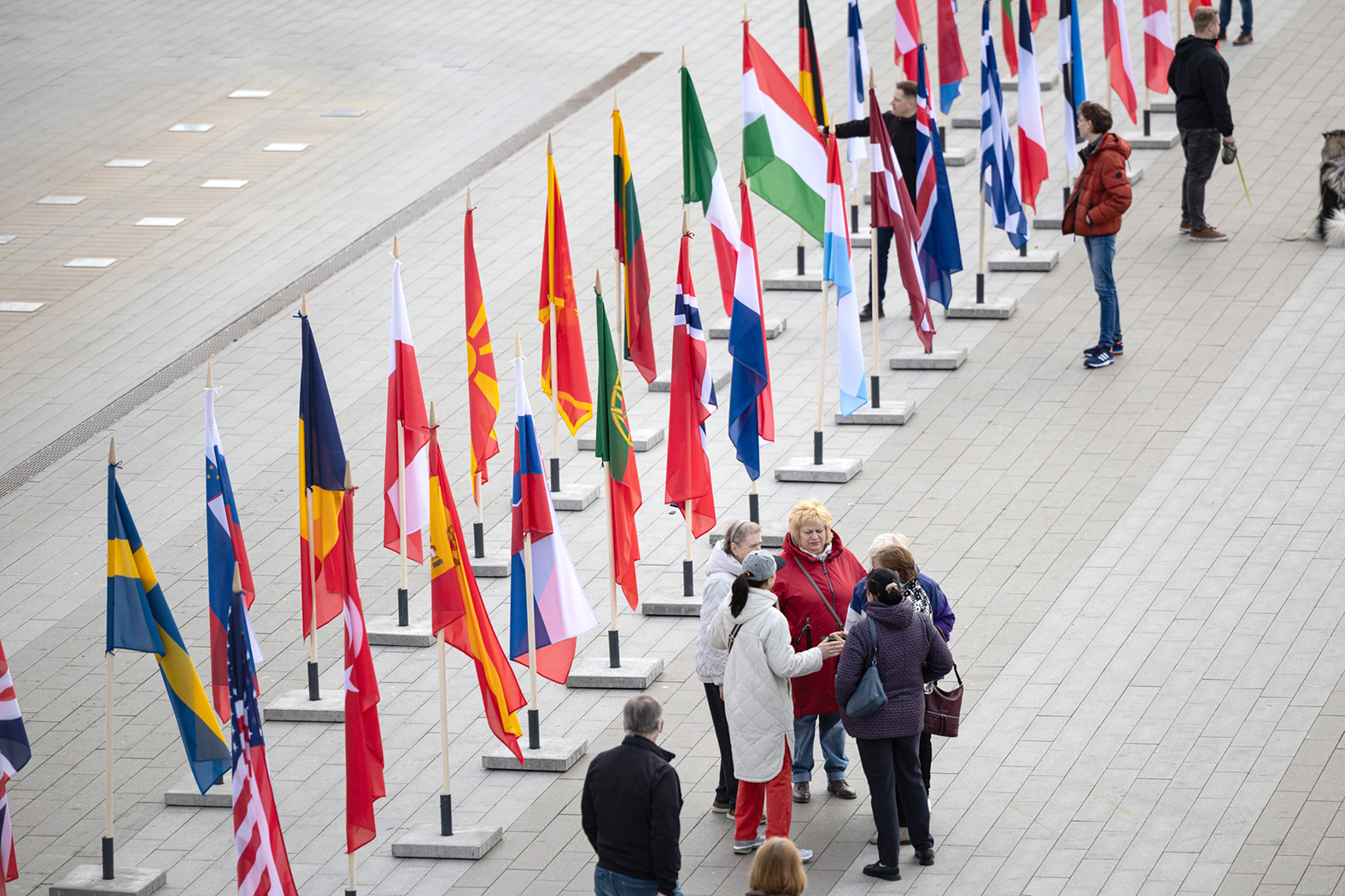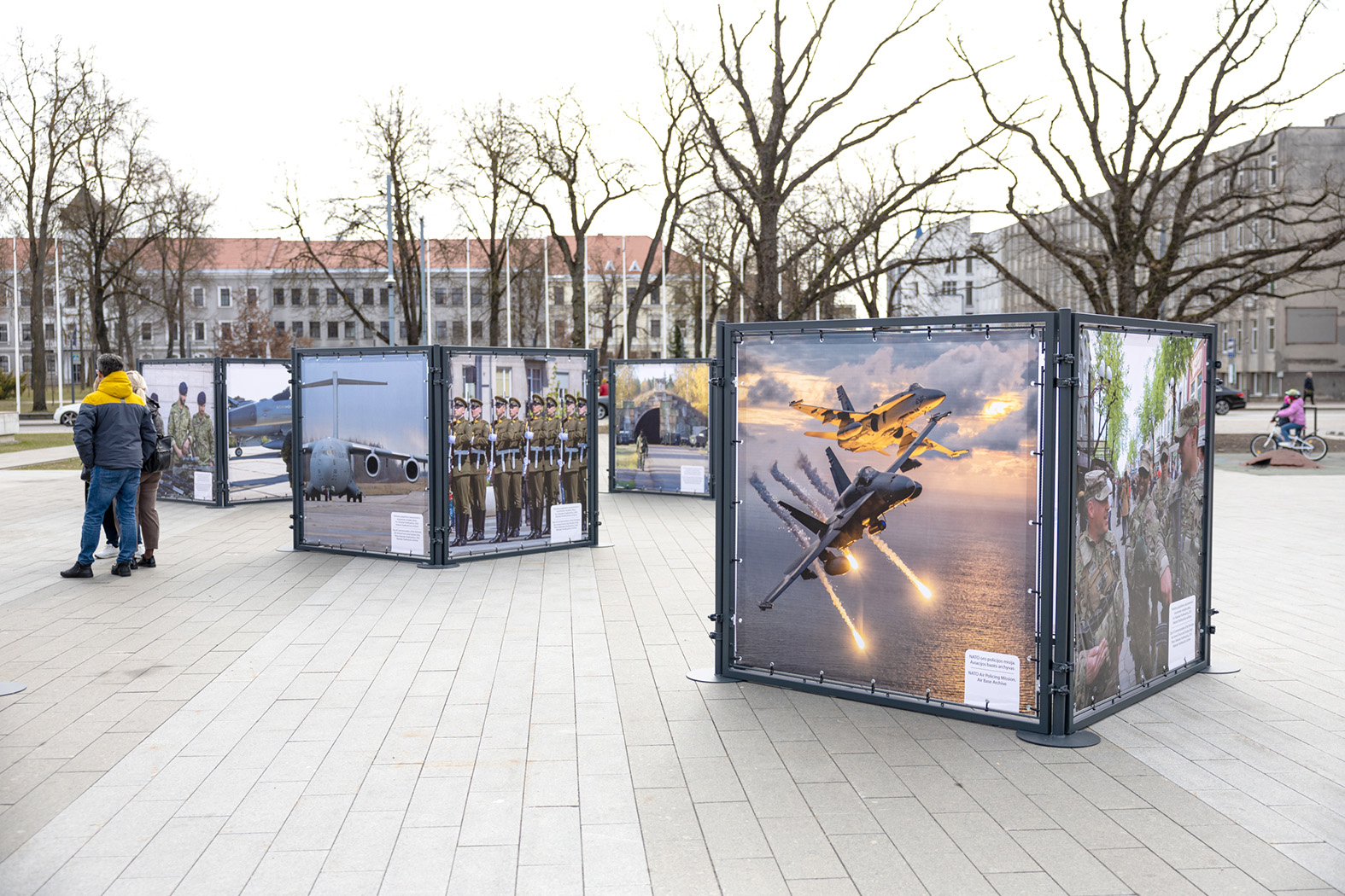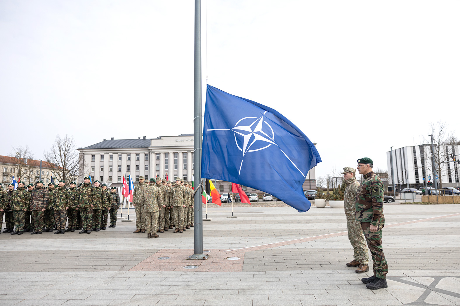 Iškilmingas vėliavos pakėlimas vyko greta visų 32 NATO šalių vėliavų kompozicijos ir fotografijų parodos „Taikos sargyboje“.