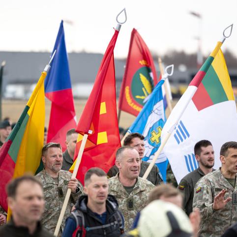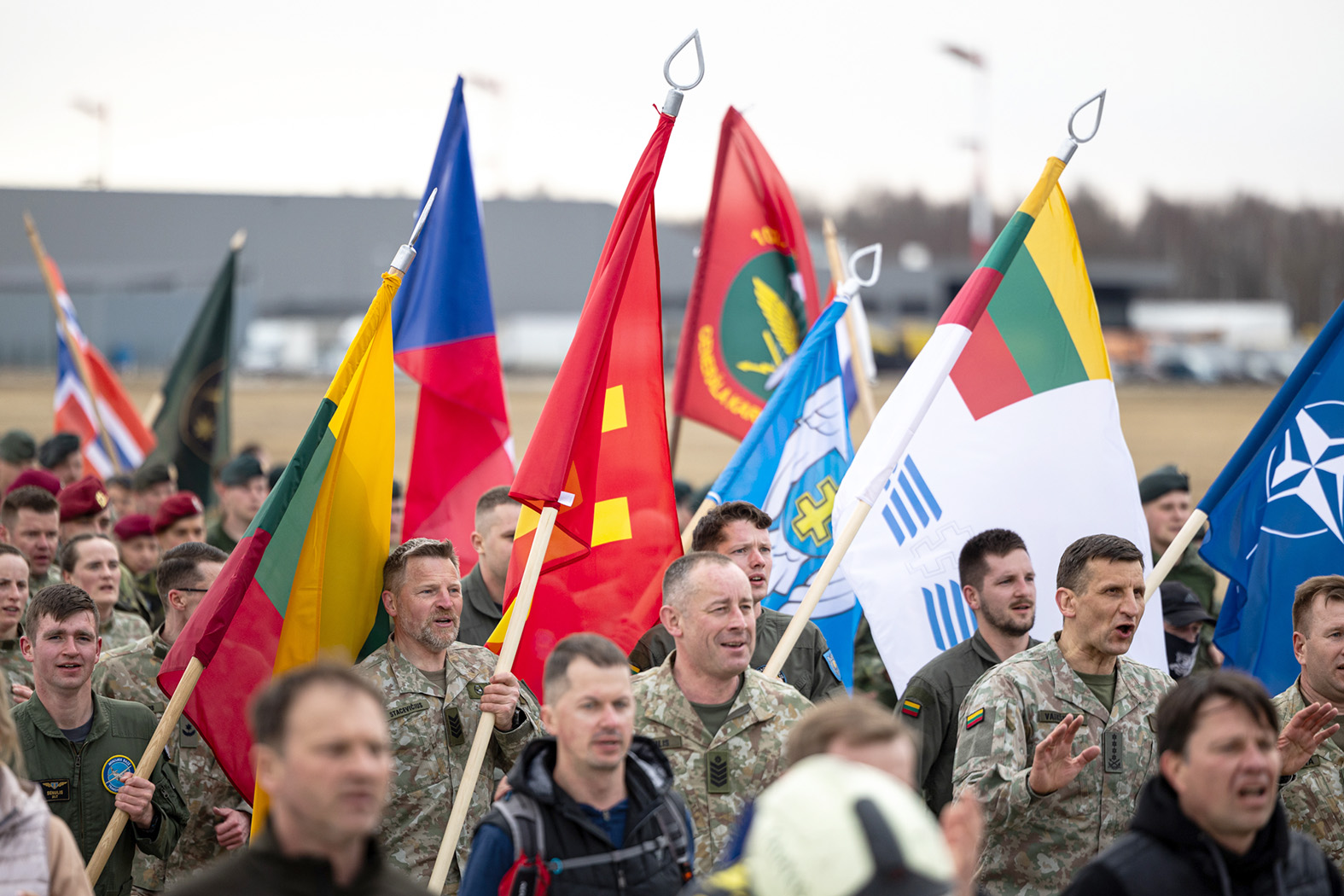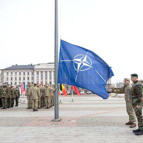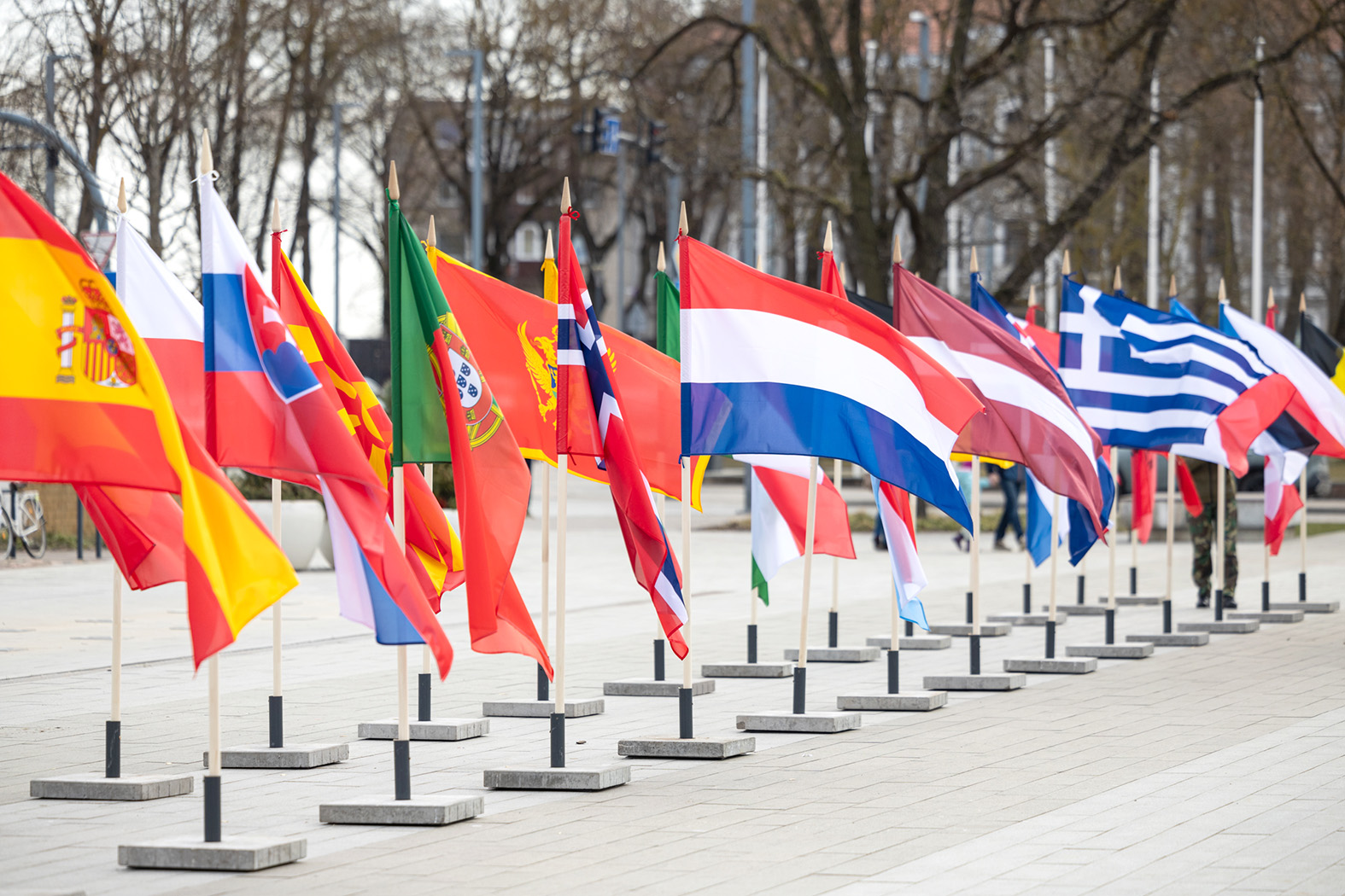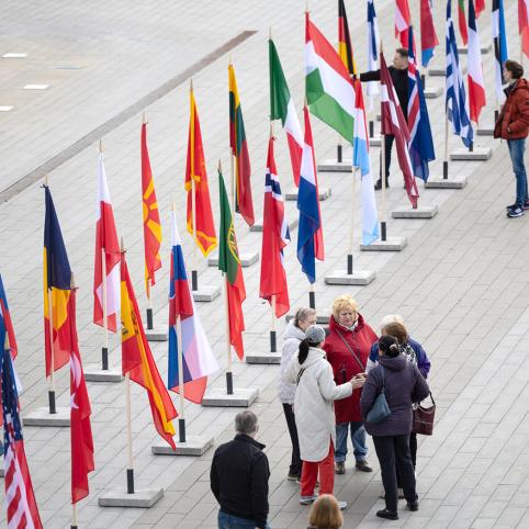 Iškilmingas vėliavos pakėlimas vyko greta visų 32 NATO šalių vėliavų kompozicijos ir fotografijų parodos „Taikos sargyboje“.