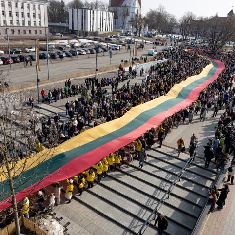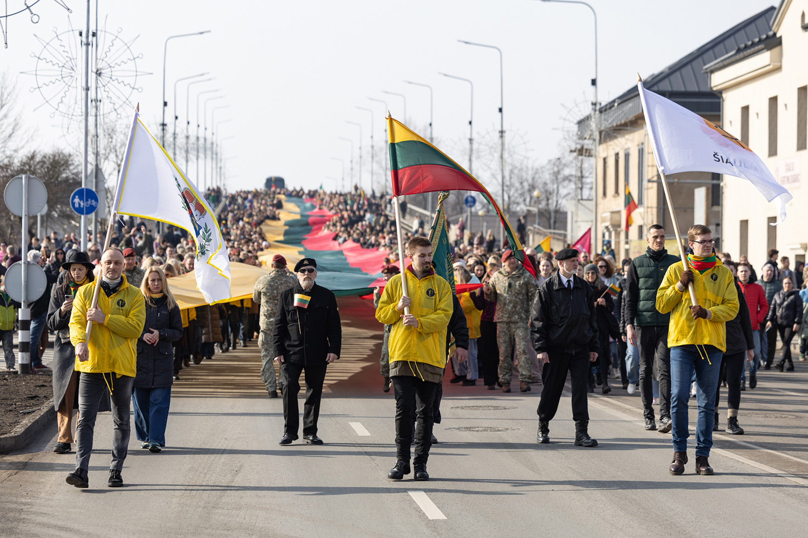Saulėtą Kovo 11-osios rytą nuo Šiaulių arenos į Prisikėlimo aikštę pajudėjo Krašto apsaugos savanorių pajėgų Prisikėlimo apygardos 6-osios rinktinės organizuoto trispalvės žygio „Lietuva mūsų širdyse“ dalyviai. Tryliktą kartą vykusiame žygyje 300 metrų ilgio trispalvę nešė ir ją lydėjo gausus būrys žmonių – nuo vaikų iki senjorų.