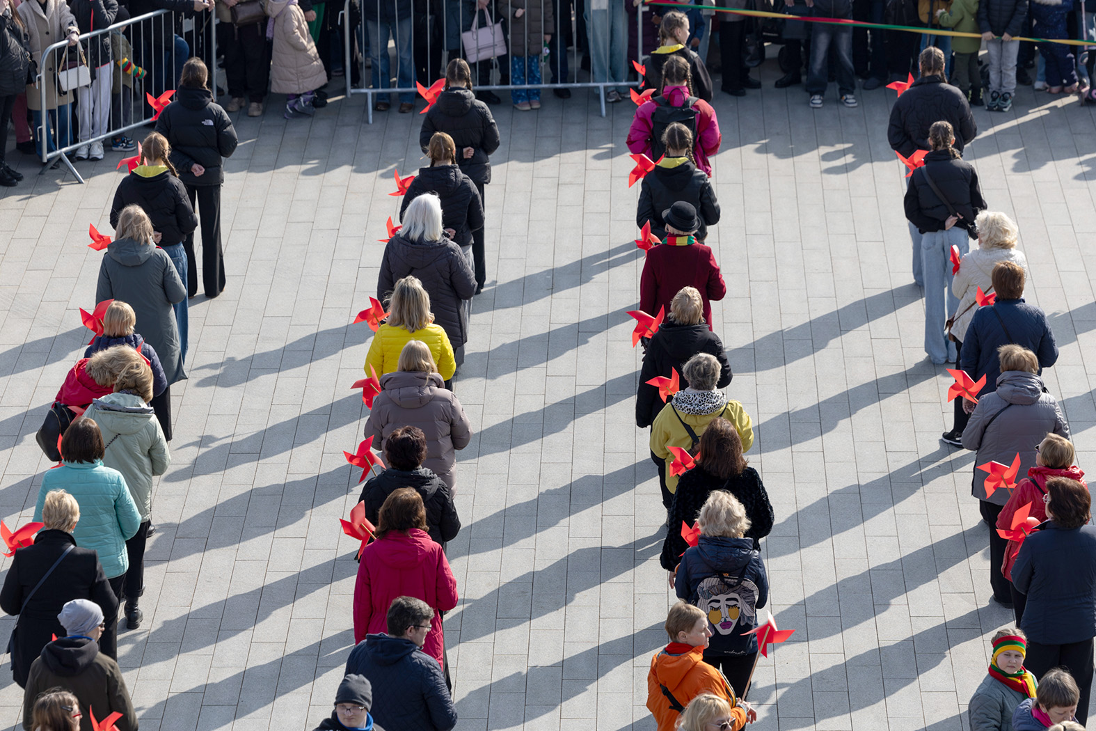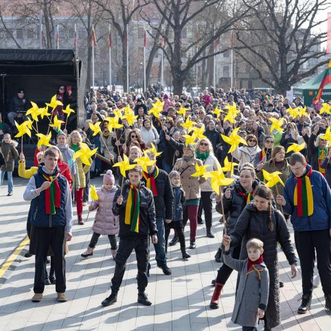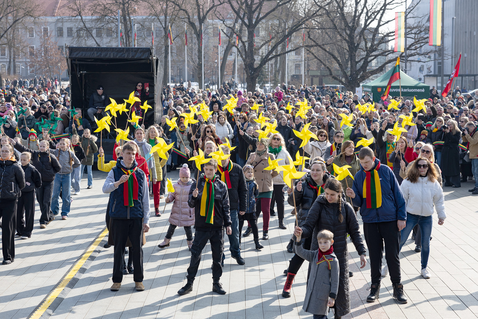 Per 200 dalyvių susivienijo masiniam malūnėlių šokiui – trispalviai malūnėliai sukosi pagal grupės „Kitava“ dainą „Žemė mano“.