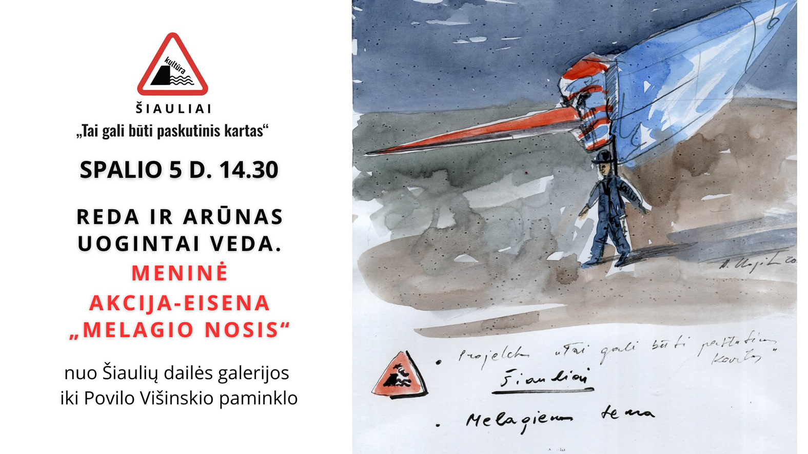 14.30 val. kultūros bendruomenė kviečia jungtis į bendrą meninę akciją-eiseną „Melagio nosis“ Šiaulių miesto pėsčiųjų bulvaru, kurią ves menininkai Arūnas ir Reda Uogintai. Skanduojant bus judama nuo Šiaulių dailės galerijos iki Povilo Višinskio paminklo, kur eisenos dalyvius pasitiks Valstybinio Šiaulių dramos teatro aktorė Nomeda Bėčiūtė, kuri perskaitys kultūros bendruomenės manifesto tekstą. Susirinkusieji bus kviečiami prie atviro mikrofono pasisakyti.