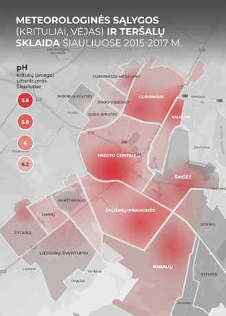 Remiantis Šiaulių municipalinės laboratorijos kritulių (sniego) užterštumo tyrimų, atliktų 2015-2017 m. duomenimis.