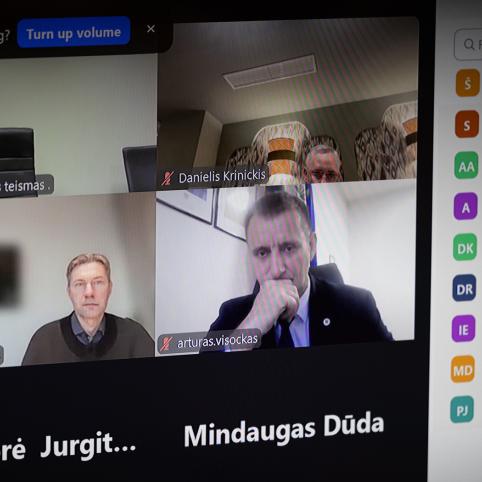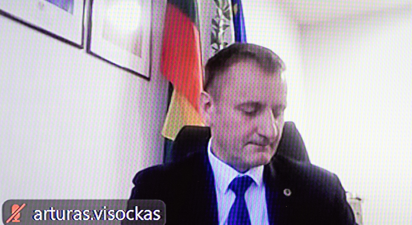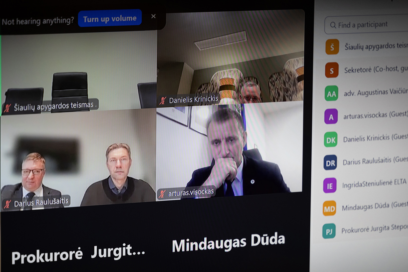 Visi trys kaltinamieji ir jų advokatai posėdyje dalyvauja nuotoliniu būdu.