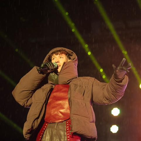 Įžiebus eglę, šventinį vakarą tęsė atlikėjas Silvester Belt, 2024 metų „Eurovizijos“ dalyvis.