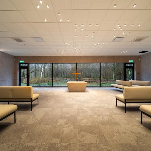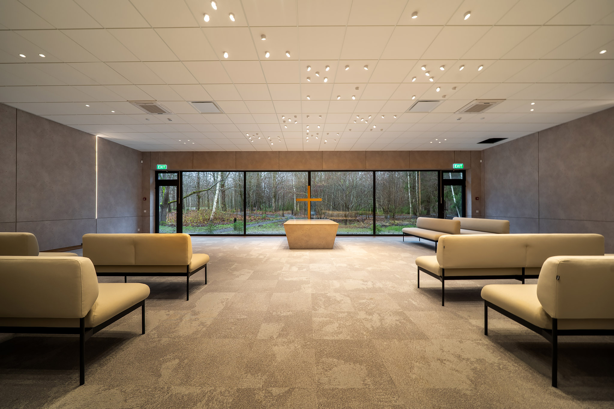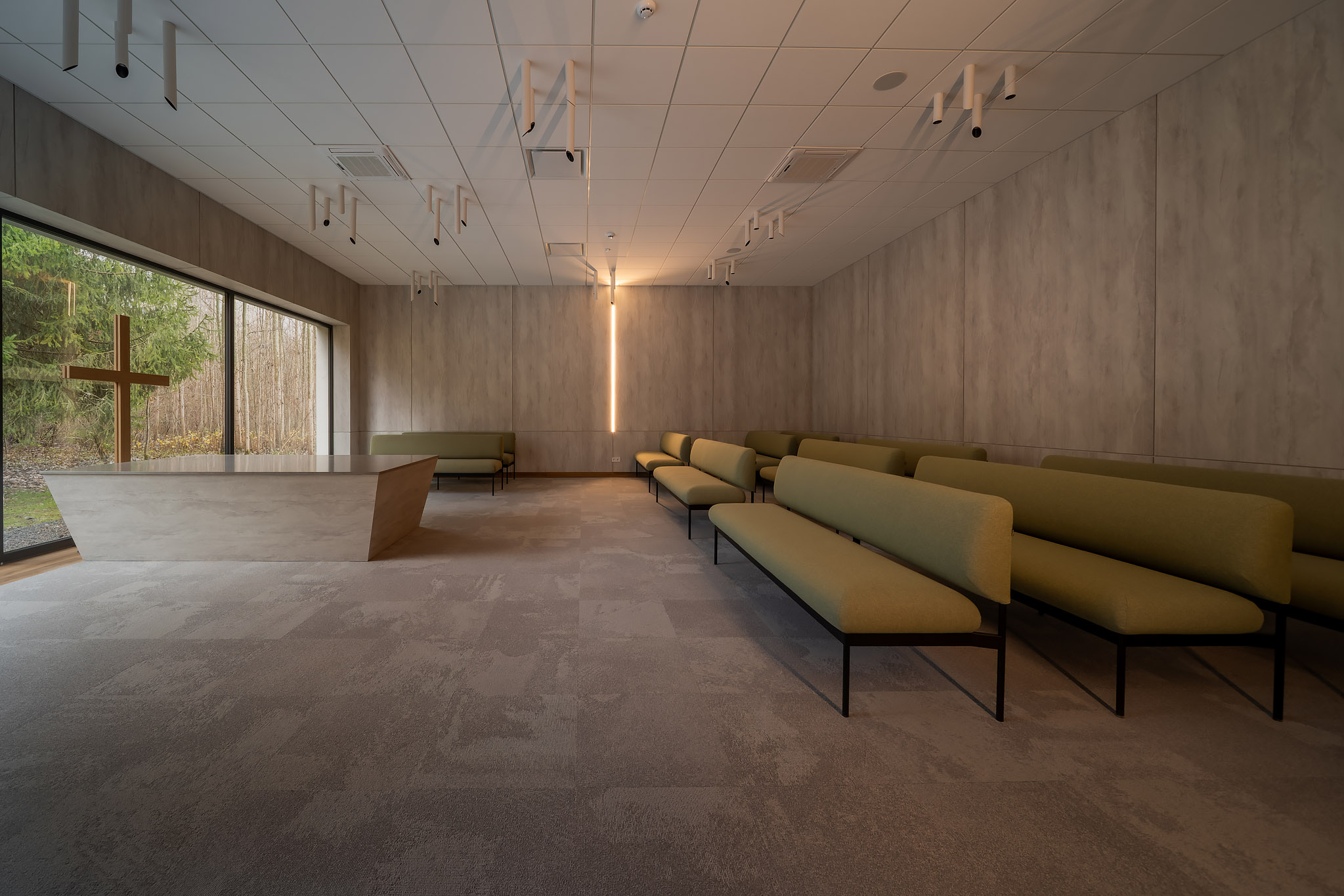 REKVIEM atsisveikinimo namų interjere vyrauja šiltos spalvos, vos čia įžengus tampa aišku, kad siekiama sukurti namų atmosferą. Salėse sustatyti ergonomiški minkštasuoliai, kad minčių neblaškytų kažkokie nepatogumai.