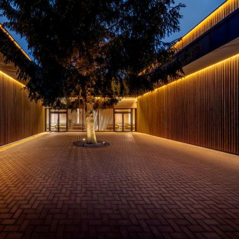 Tam, kad įgyvendintų savo viziją Šiauliuose, organizatoriai ilgai dairėsi tinkamo sklypo. Jis buvo rastas J. Jablonskio gatvėje. Dabar pro panoraminius atsisveikinimo namų langus artimieji ir kiti atėję atsisveikinti su velioniu mato daug žalumos – atsisveikinimo namų teritorijoje esantį parką su įvairiais medžiais ir augmenija.