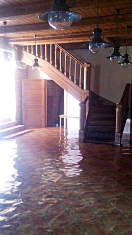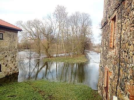 Vakar popietę Kruojos vandenys, leidžiami per užtvanką Pakruojyje, užtvindė du Pakruojo dvaro pastatus. Vanduo sunkėsi per sienas į rekonstruotas patalpas, kurias panašus potvynis nuniokojo prieš dvejus metus.
