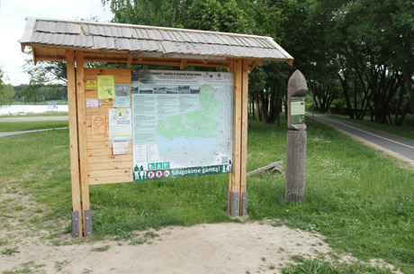 ŽEMĖLAPIS: Talkšos ekologinio tako žemėlapis dideliame stende, trimis kalbomis, su QR kodu.