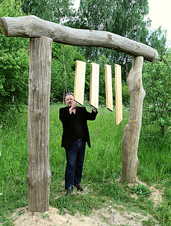 Priartėjame prie paplūdimio: galima pagroti pakabintais tabalais, stipruoliams padėtas rastas, kurį jie gali pakelti, vilkti, nešti, vaikai gali pažaisti žaidimų aikštelėje, pasisupti.