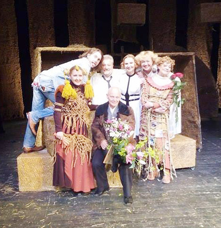 SVEI­KI­NI­MAS: Ak­to­rių Juo­zą Bin­do­ką 65-ojo gim­ta­die­nio pro­ga po spek­tak­lio „La­bai pa­pras­ta is­to­ri­ja“ pa­svei­ki­no ko­le­gos.