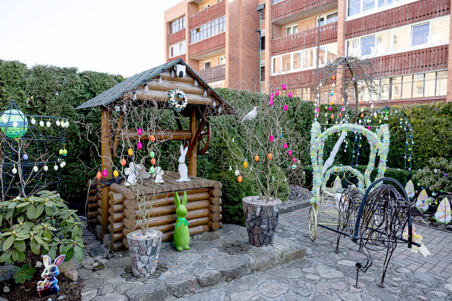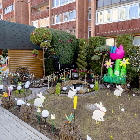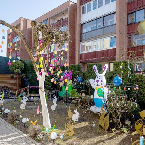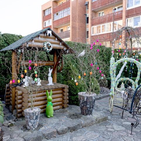 Šiauliuose atidaryta šv. Velykų rezidencija. Žiemą M. Valančiaus gatvėje gyvenantys Danutė ir Jonas Tamašauskai savo namų kieme buvo sukūrę kalėdinę pasaką, o dabar ją pakeitė pavasariškas artėjančios Prisikėlimo šventės grožis.