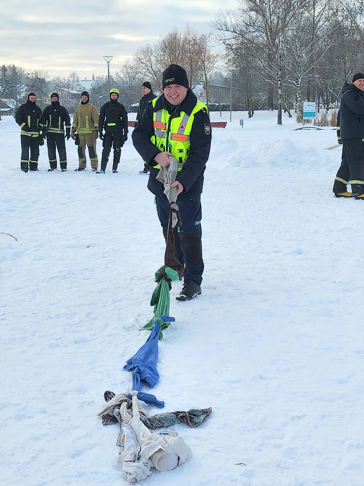 Renginio metu gelbėtojai praktiškai parodė, kaip elgtis ant ledo, parodė, kokių veiksmų imtis, jeigu ledas lūžtų ir jeigu į vandenį įkristų kitas žmogus.