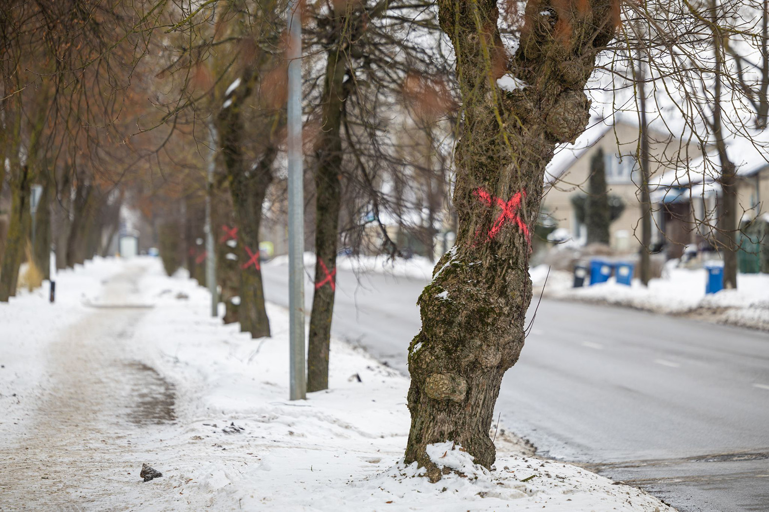 Žemaitės gatvėje visa eilė medžių jau pasmerkti – pažymėti raudonais kryžiais.