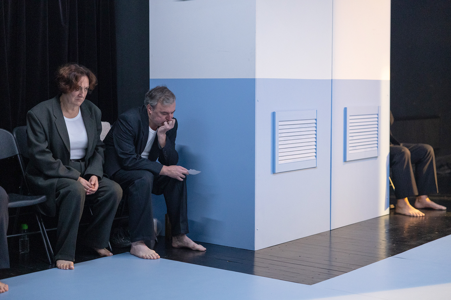 Ir prodiuseriai, ir teatras klausė, ką noriu daryti, ar tai bus grynai dokumentika, aktorių išpažintys? Kadangi aš jau kūriau tokį spektaklį („Mongolija“ – red. past.), šį kartą nenorėjau gryno dokumentalizmo, norėjau trauktis daugiau į fikcinį pasaulį. Dėl to šis naratyvas yra persipynęs.