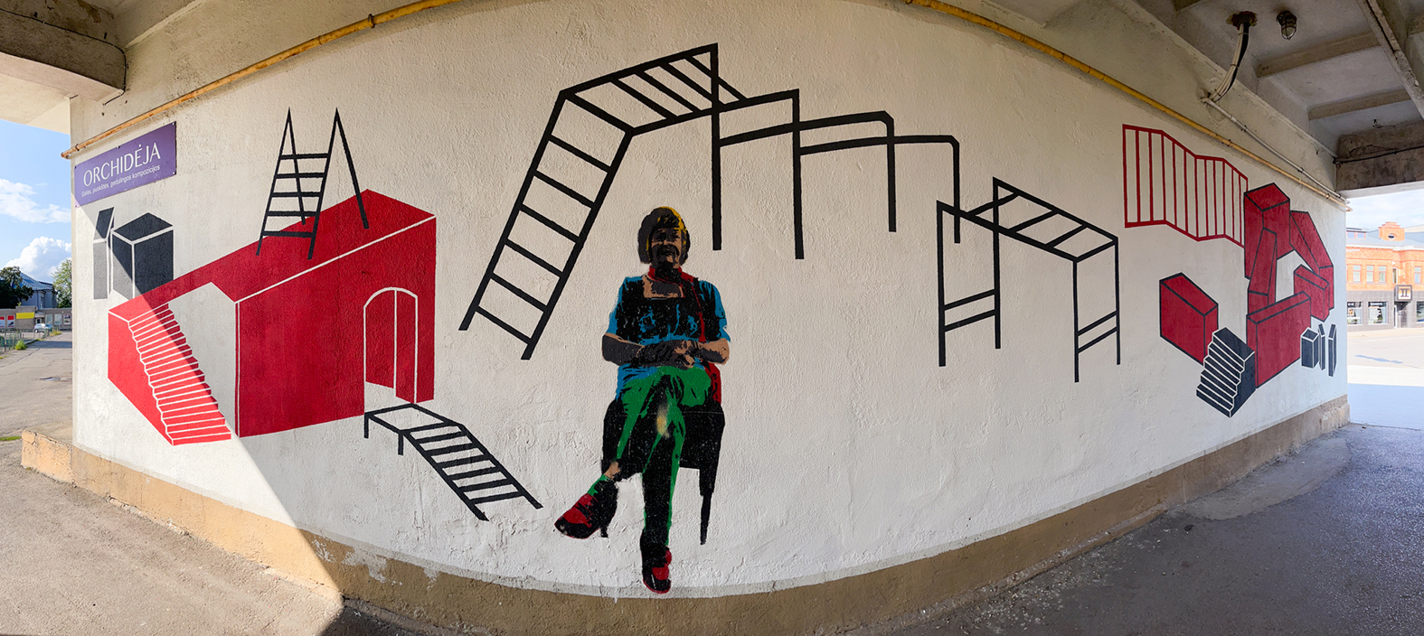 – Trečias. Pirmas yra Kuršėnuose, Kultūros centre, jį kūrėme kartu su Egle Narbutaite, ji jau buvo dariusi sienos piešinių. Gavau pasiūlymą, atsisakiau, bet pasiūliau Eglei. O ji sako: „Darom kartu.“ Galiausiai sutikau pabandyti. Siena buvo didžiulė, reikėjo keltuvų. Gerai, kai pradedi nuo tokio darbo – kitos sienos nebebaisu.