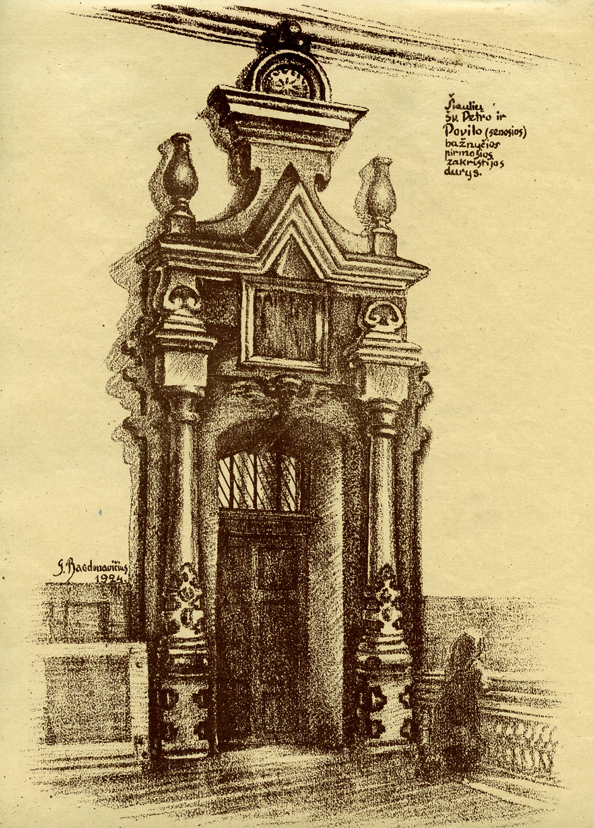 Šiame leidinyje publikuojami G. Bagdonavičiaus 1923-1925 metais sukurti piešiniai: Šiaulių šv. Petro ir Povilo (senosios) bažnyčios vaizdas iš Joniškio pusės, iš šiaurės pusės, šoninės koplyčios vaizdas prieš perstatymą, bažnyčios pagrindinis (vakarų) portalas ir kiti jo piešiniai.