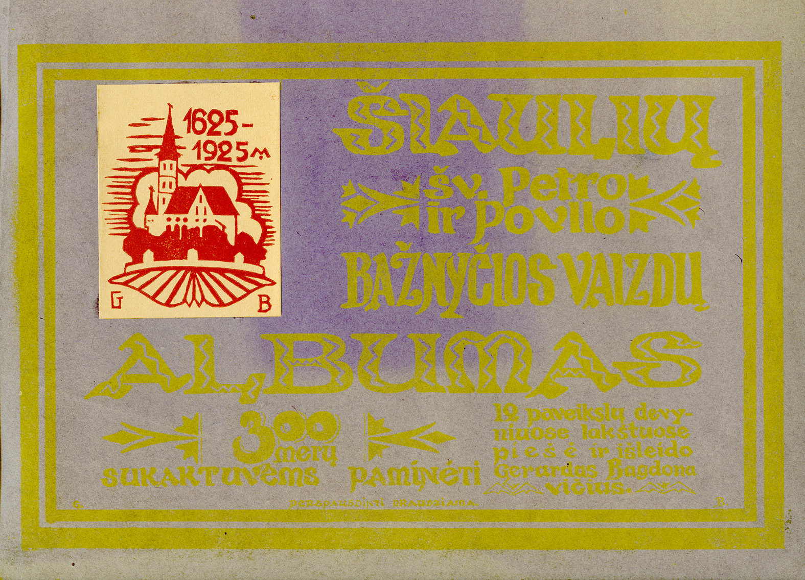Albumo viršelio dešiniajame kampe atspaustas Gerardo Bagdonavičiaus grafikos lakštelis su Šiaulių katedros vaizdu ir dailininko monograma „G /B“ ir datomis: „1625-1925 M.“. Tai pirmasis meno albumas prieš šimtą metų išleistas Šiauliuose. Vidinėje albumo pusėje yra G. Bagdonavičiaus įvadinis tekstas apie Šiaulių Šv. Petro ir Povilo bažnyčios statybą, istoriją ir architektūrinius ypatumus. Jame jis rašo: „Kunigo-djakono Jasinskio pastangomis 1924 m. buvo atliktyas pagrindinis visų rūmų remontas i pristatytos dvi nedidelės bažnyčios šonuose koplytėlės, kuių stilius, tai pat ir zakristijų išvaizda, iš oro atitinka visos statybos stiliui. Tais pačiais metais buvo aptvertas ir šventorius. Vartai ir bokšteliai yra išlikę iš XVII amžiaus.“
