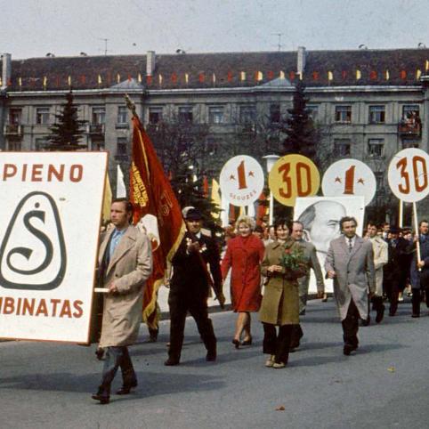 Taip Šiaulių aikštėje susiformavo tradicija. Pergalės paminklo tribūnos centre stovėdavo miesto vadovai, dešinėje – nusipelnę miesto žmonės, socialistinio darbo didvyriai, revoliucinių kovų dalyviai su medaliais ir pan., o visą kairę užimdavome mes, bene trisdešimt dailininkų-apipavidalintojų. Dūdos triūbuodavo, mokyklos žygiuodavo, gamyklų direktoriai skrybėlėmis mosikuodavo, įmonių kolektyvai taikydavo žingsnį, kad mes, gamyklų dailininkai, būtume pagerbti.