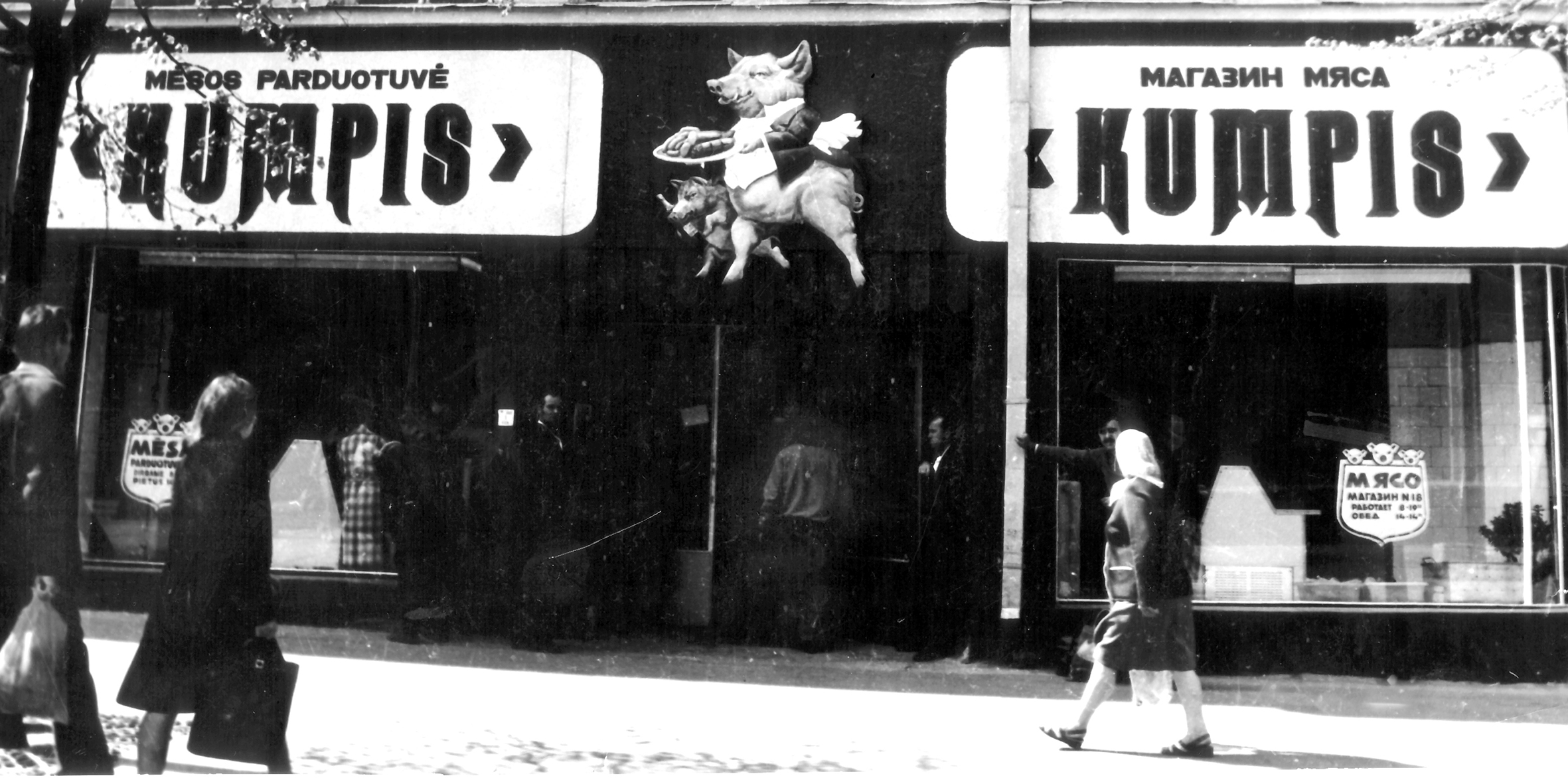 – Argi aš nepanašus į akiplėšą? Sutapo, kad su šios reklamos pasirodymu parduotuvėse dingo mėsa ir žmonės dėl to ėmė kaltinti prekybininkus: Štai, pasikabino kumpį, o mėsos nėra... Mėsą ėmė skirstyti per darbovietes, o kaltininkais tapo broliai latviai, kurie, girdi, išpirkdavo visą kiaulieną. Savo archyve saugau anoniminį laišką: