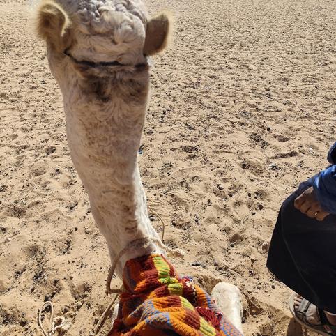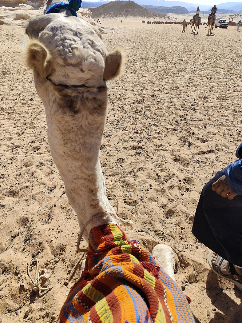Mūsų, kokių dešimties žmonių, karavaną į dykumą lydi beduinų vaikas. Gido aiškinimu, šis iš pažiūros ne vyresnis negu dešimties metų berniūkštis tuo metu turėtų mokytis. Bet mokytis jam ne taip naudinga, kaip iškaulyti vieną kitą dolerį iš dosnesnio turisto.