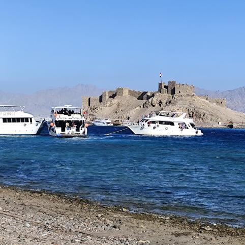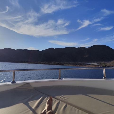 Sočiai papietavę mums rezervuotame laivelyje, plaukiame Akabos įlanka (Raudonosios jūros įlanka) arčiau Jordanijos krantų. Prasideda laikas, skirtas giluminiam ir paviršiniam nardymui – tokio gražumo koralų rifų, kokie yra čia, nedaug kur pamatysi. Vaizdų galią sustiprina ant vandens pastatyta Saladino pilis.