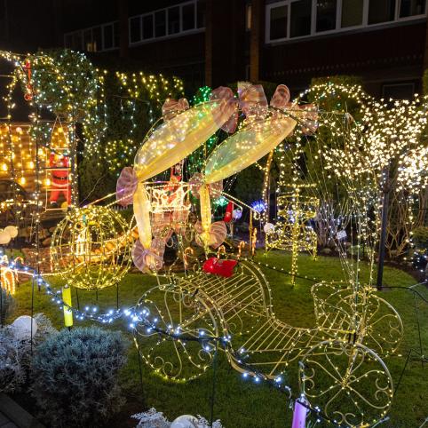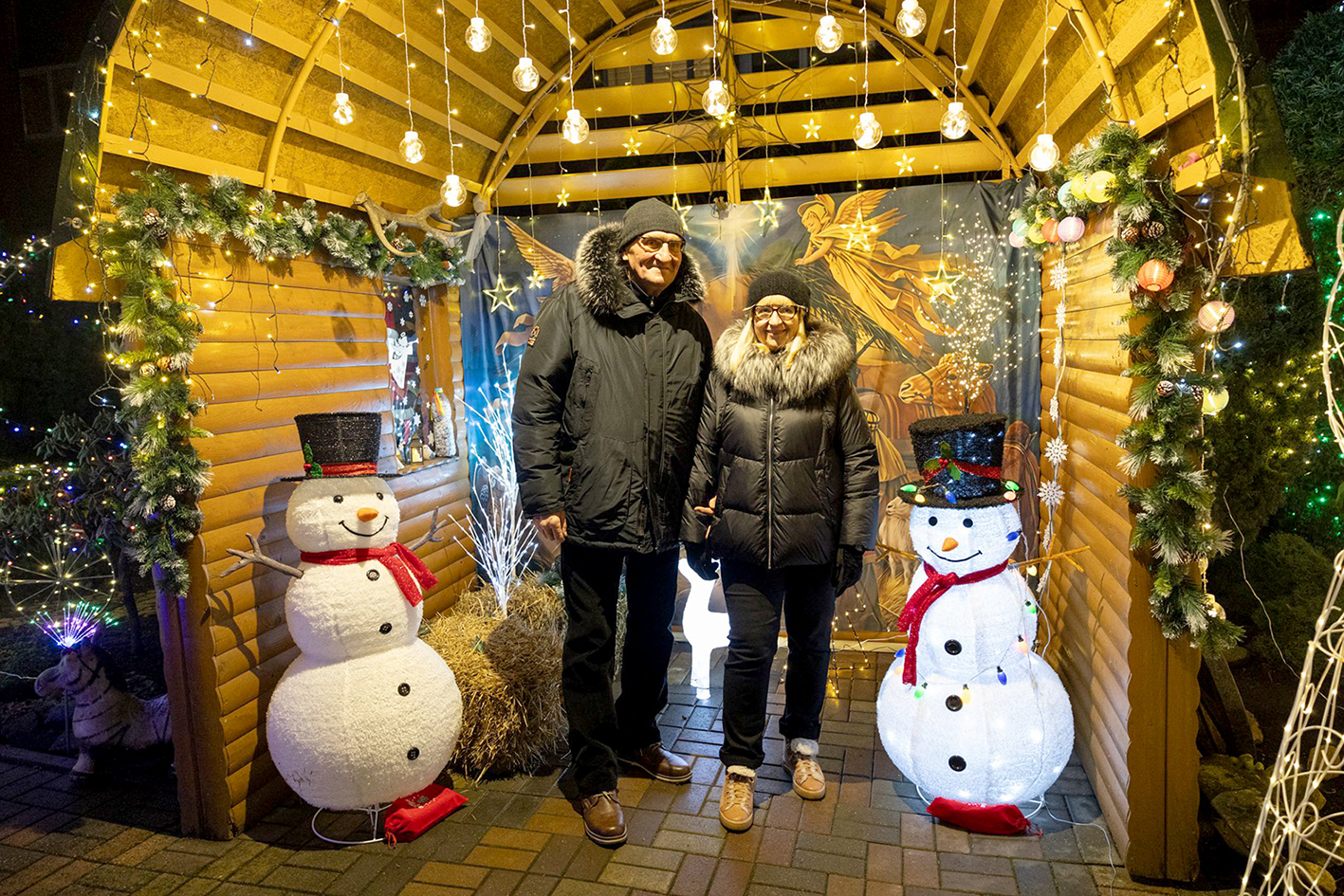 Danutė ir Jonas Tamašauskai pasitinka visus, vakarais užsukančius pasigėrėti jų sukurta kalėdinės šviesos ir grožio erdve.