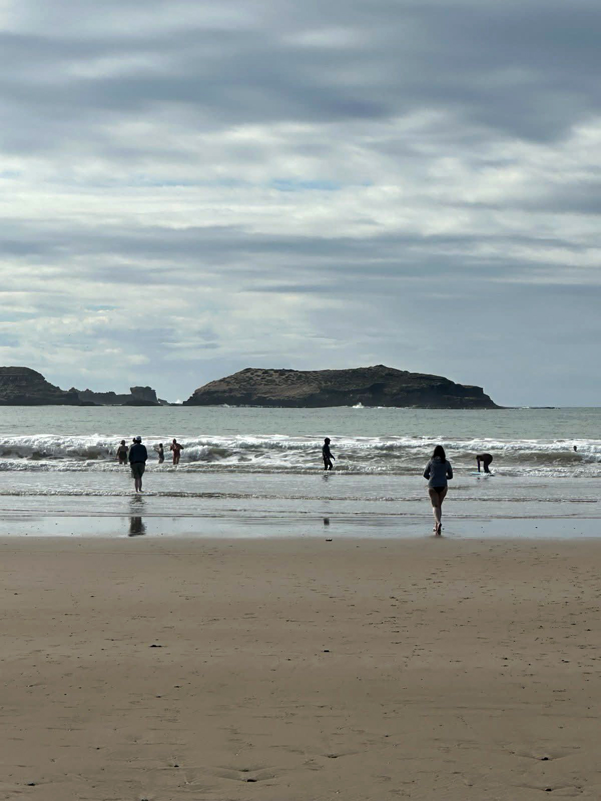 Atvykusios į kurortą viešbutyje sušokame į maudymosi kostiumėlius, vasarines sukneles ir pradedame pažintį su Atlanto vandenynu. Kirtusios kelią bei dar visai naują promenadą atsiduriame vandenyno pakrantėje. Tiesa, vanduo šiek tiek atslūgęs, tenka paėjėti. Šokame į šniokščiančias bangas, kurios, palyginti su mūsų Baltija, gerokai stipresnės. Ir vandens trauka atgal į gelmę stipresnė. Vandens temperatūra – kaip mūsų jūroje vasaros pradžioje, tačiau besimaudančių daugiau nesimatė. Didelės vandenyno bangos šiame kurorte yra banglentininkų rojus, tačiau tokiu metu ir šių entuziastų matėsi nedaug.