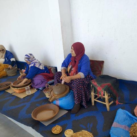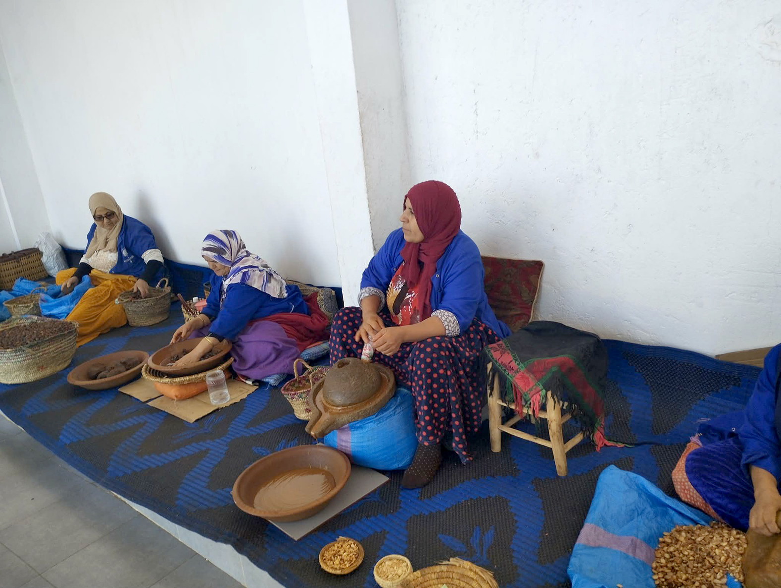 Mums prieš akis išdygsta vietinių moterų manufaktūra, čia demonstruojama, kaip iš argano medžio kaulavaisių branduolių spaudžiamas vertingas argano aliejus: vienaip – kosmetikai, kitaip – maistui. Moterys mus pasveikina, berberų kalba sugiedodamos sveikinimo giesmelę.