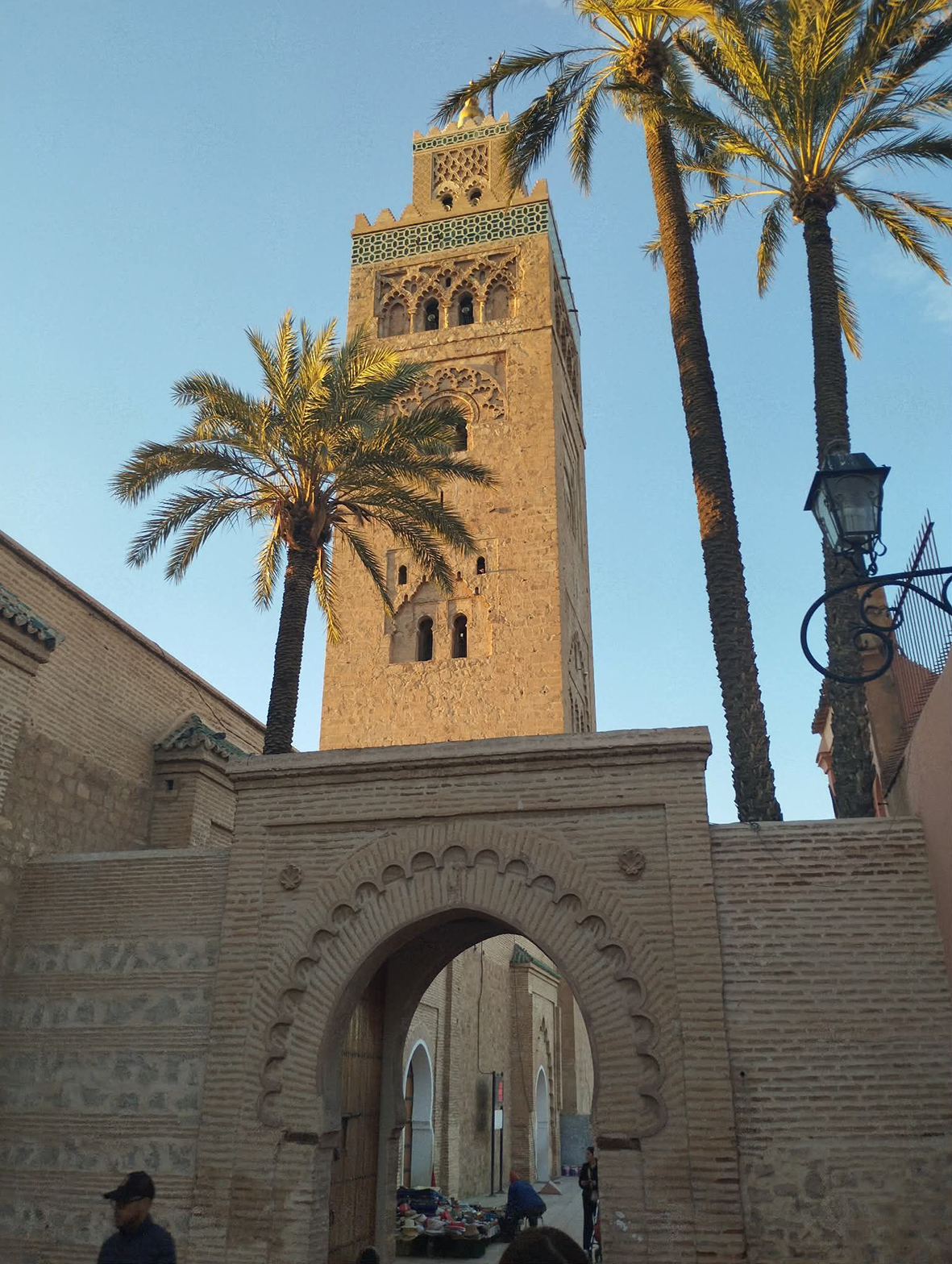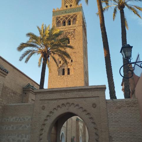 Keliaujame beveik milijoninio miesto, buvusio Maroko sostine, gatvėmis, kol prieiname šalia garsiosios Jemaa El Fna aikštės esantį aukščiausią mieste statinį – Kutubijos mečetės minaretą. Ikoninio miesto simbolio aukštis – 77 metrai, ir jis yra matomas iš visų miesto pusių. Šiuo metu ten vyksta remonto darbai, nes mečetė nukentėjo nuo žemės drebėjimo. Gidas paaiškino, kad mieste neleidžiama statyti aukštesnių nei šis minaretas pastatų, nors viena futbolo žvaigždė norėjo įrengti viešbutį-dangoraižį.
