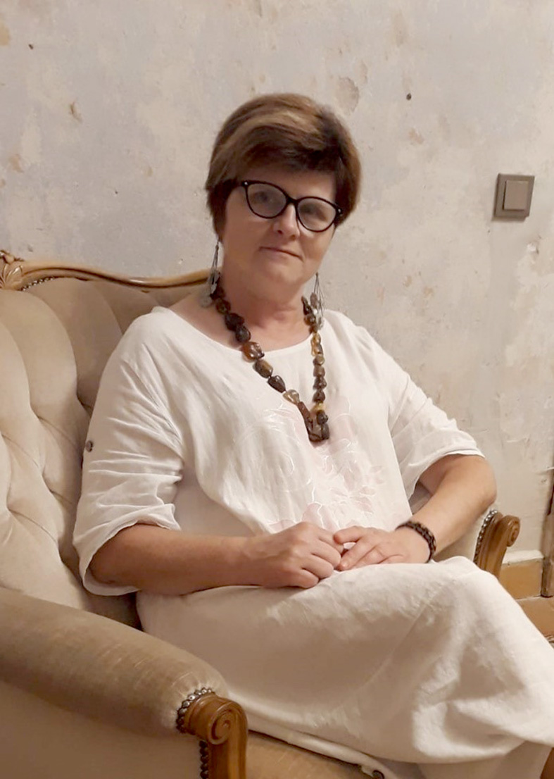 Autorė apie save pasakoja: „Man patinka viskas: siuvinėjimas, mezgimas, tapyba, rištinių, interjerinių lėlių kūryba, dekupažas, lipdymas iš molio, popieriaus karpiniai. Paskutiniu metu labai sužavėjo šiaudinių sodų „auginimas“. Rišdama sodus jaučiu ryšį su gamta ir senaisiais tautiniais papročiais.“