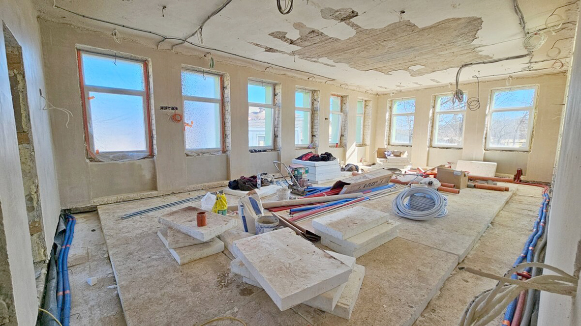 Darbų rangovas UAB „Akmens takas“ kompleksiškai atnaujina vidaus patalpas, gerinant jų funkcionalumą ir estetinę būklę keičiamos nusidėvėjusios inžinerinės sistemos – vandentiekio, nuotekų, šildymo, elektros instaliacija, taip pat įrengiama moderni vėdinimo sistema.
