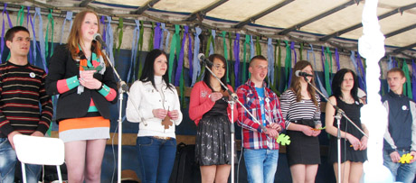 PAGARBA: Žeimelio žemės ūkio mokyklos moksleiviai skaitė odę „Vienybės ąžuolui“, kurią sukūrė kraštotyrininkė Regina Noreikienė.