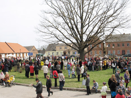 EISENA: Artėja vidudienis – šventės pradžia. Darželinukų, moksleivių bei jų mokytojų eisena, grojant vietos dūdų orkestrui, skanduodami „Tegyvuoja Žeimelio vienybė“, patraukė į aikštę prie Vienybės ąžuolo.