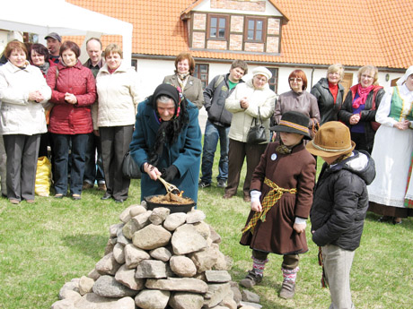 AUKURAS: 92 metų Paulina Jankauskienė 1923-aisiais buvo tik dviejų metukų, todėl ąžuolo sodinimo šventės nepamena. Atgabenta prašmatnia lineika seniausia miestelio gyventoja ponia Paulina uždegė šventinį aukurą.