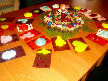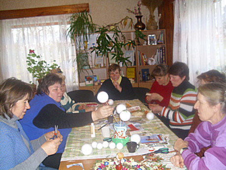 Bendruomenės nares pirmininkė Eurika Drungilienė mokė gaminti rankų darbo muilus, kurie virto gėlėmis, angelais, dekupažo technika gražinti kalėdinių eglučių dekoracijas. Valdybos narė Liuda Lidienė pamokė pasigaminti muilus- šveistukus. Muilą tereikia apvelti įvairių spalvų vilna.