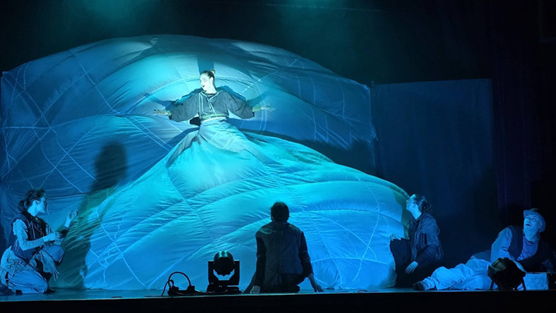 Atmintis, vaizduotė ir prasmės paieškos spektaklyje išreikštos judesiu.