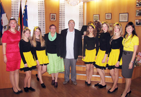 SVEIKINIMAS: Kuršėniškės moksleivės Jaunųjų europiečių sąjungą sveikina šokiu.