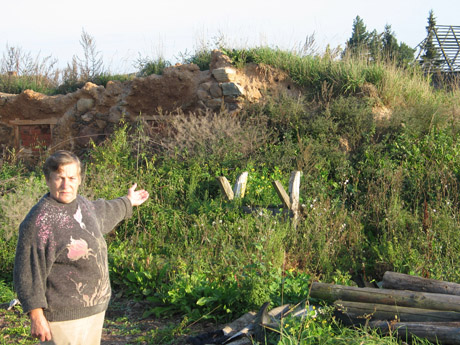 TARŠA: Šalia Angelės Rimienės namo – buvusio kolūkinio trąšų sandėlio griuvėsiai, nuo kurių į visas kaimo puses – užterštas šulinių vanduo.