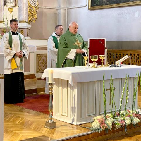 Po šv. Mišių dekanas klebonas kun. Remigijus Čekavičius dėkojo svečiui už vadovavimą atlaidų liturgijai, linkėjo sustoti darbų virtinėse, griauti tarp žmonių statomas sienas, globoti vieni kitus.