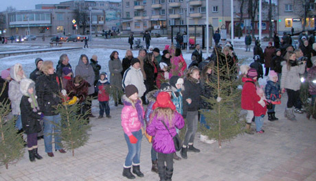Dar gerokai iki šventės pradžios Aušros aikštėje, nepabūgę žvarboko vėjo ir šaltuko, rinkosi vaikai. Daugelis iš jų atsinešė nupuoštas eglutes.