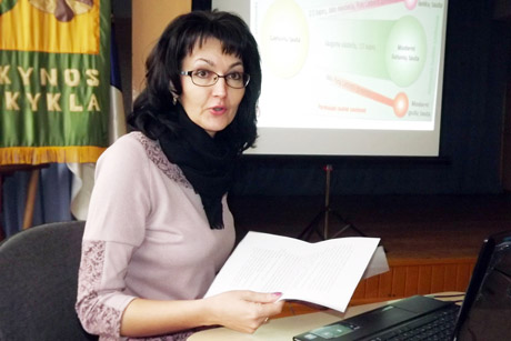KONFERENCIJA: Gruzdžių gimnazijos mokytoja Jovita Kundrotienė kalbėjo apie lietuvių kalbos likimą istorijos tėkmėje.