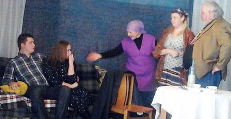 PO­PU­LIA­RU­MAS: Po­pu­lia­riau­sią  ko­me­di­ją „Bo­bu­tės su­si­py­ko“ vai­di­no ir mi­ko­liš­kie­čiai. Auš­rai Ždan­ko (vi­du­ry­je) – pri­zas už vi­sų lai­kų ge­riau­sios Da­lie­nės vaid­me­nį.