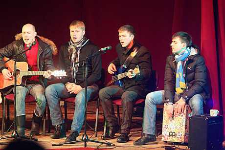 AKTORIAI: "Naisių vasaros" teatro aktoriai atsisakė vaidinti spektaklį, tačiau gūždamiesi nuo šalčio žiūrovams dovanojo muzikinę programą.