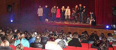 ŠALTIS: Šildomoje Raudondvario kultūros namų salėje tvyrojo šaltis, todėl ir žiūrovai, ir aktoriai sėdėjo su striukėmis.